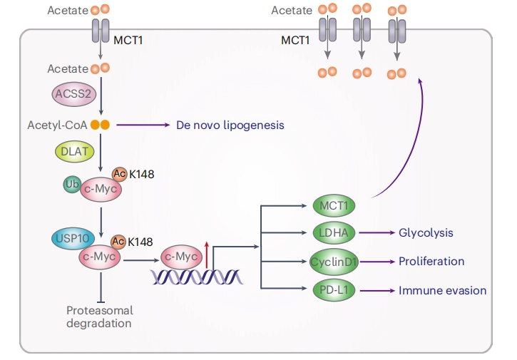 Acetate reprogrammes tumour metabolism and promotes PD-L1 expression and immune evasion by upregulating c-Myc